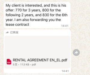我猜想中介转述我的话时没有说死,因为她是两边都拿中介费的,所以为了维护双方的利益,她把我的话转述成”房东愿意承担一部分费用“。而我的租客是刚结婚,以前没租过房,似乎不知道租赁市场的潜规则,所以再次发消息来试探我的态度。